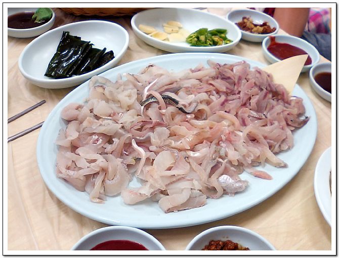 우선 첫날 먹은 회 사진, 저녁을 회를 먹고 저녁 10시쯤에 또 회를 먹어 주는 센스. 기덕이 덕분에 잘 먹었음 ^^ 서울에서 가지런하게 나온 회만 먹다가 이렇게 다소 막 나오는 회가 적응이 안됐다 ^^;;